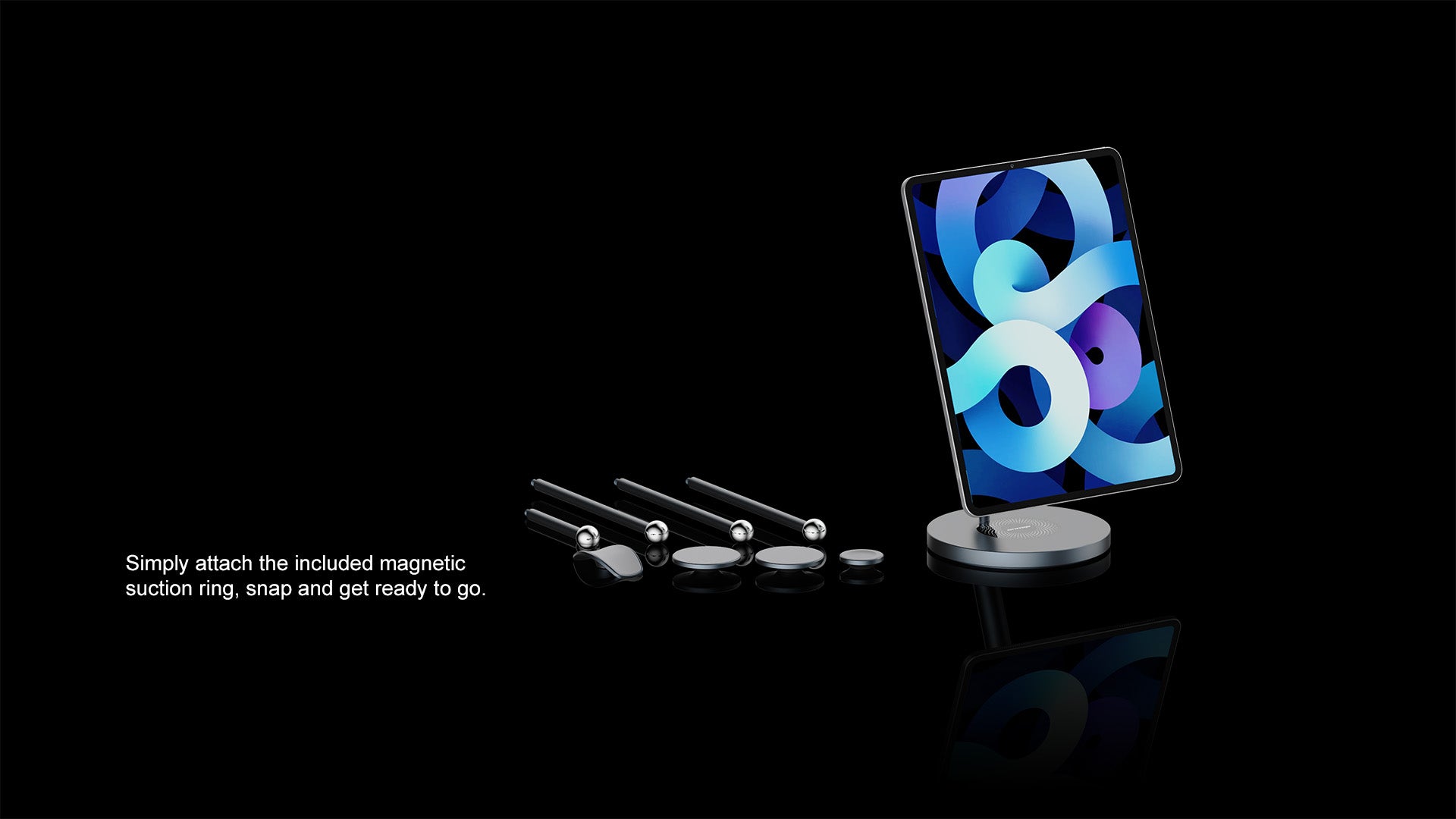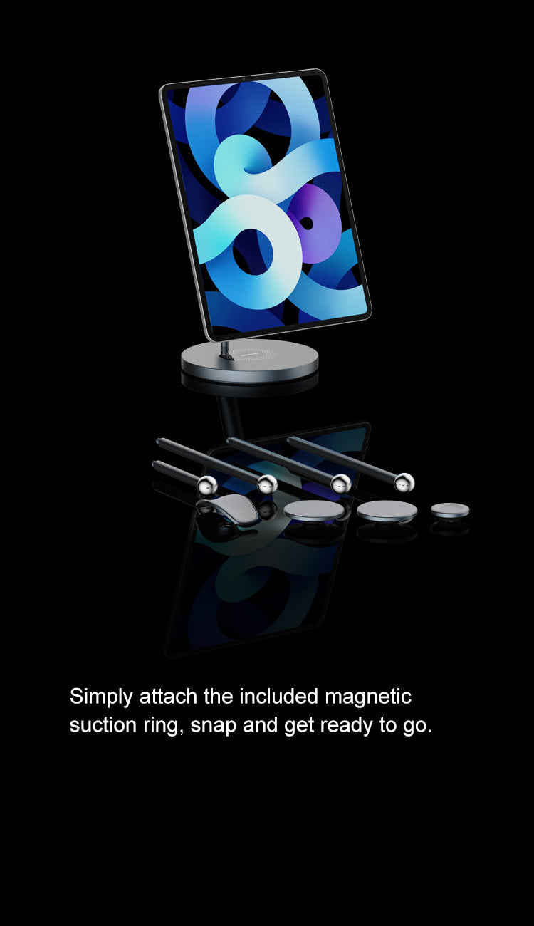 The included Magnetic Suction Ring has 12 built-in strong magnets that can be affixed to bare metal or a protective case. Reach nearly 5000g load-bearing, even for holding large-size tablet computers stably.