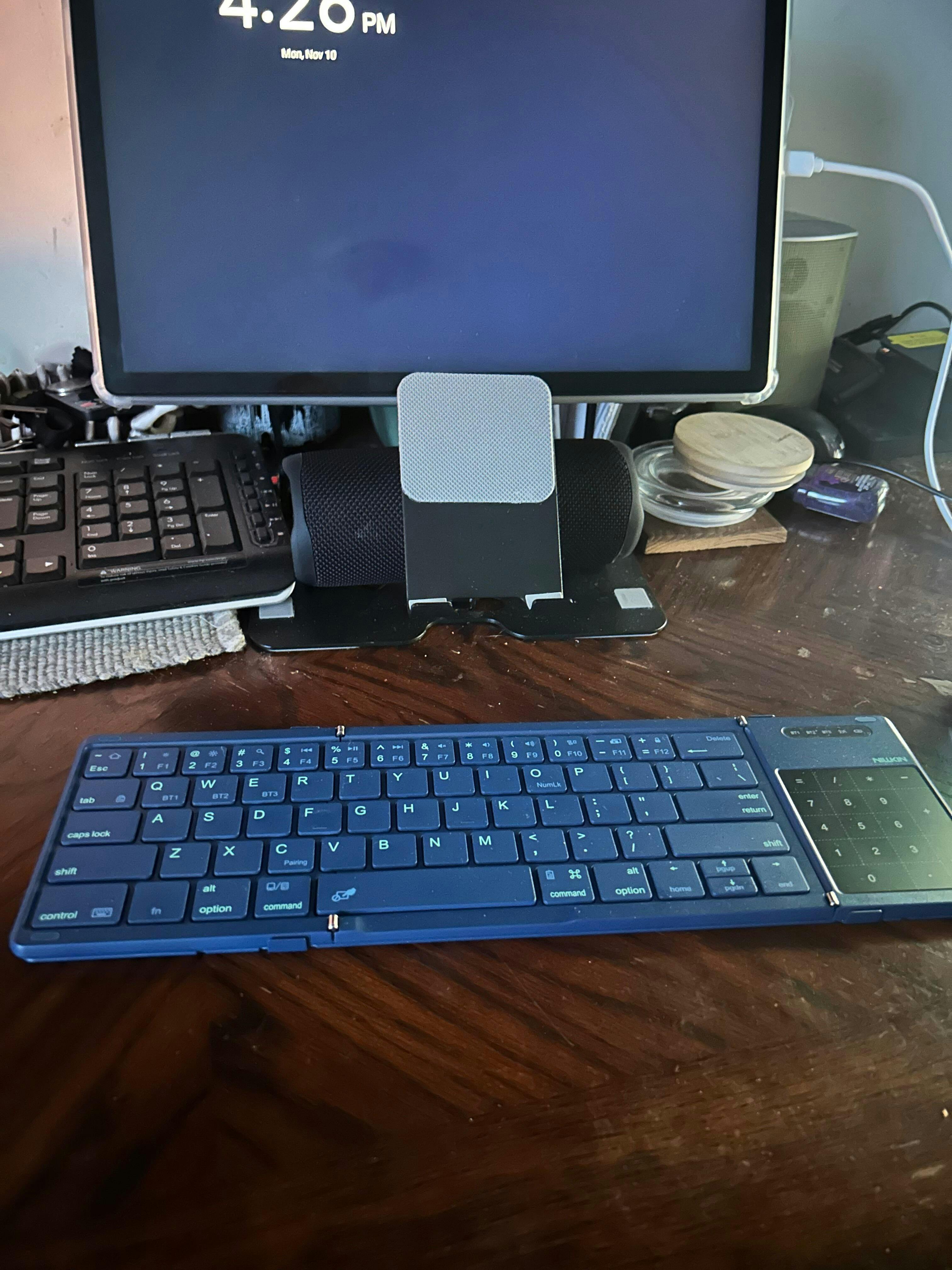 Unfolds into a full-sized keyboard, folds into a pocket-sized ninja (only 238g—lighter than your Monday to-do list).