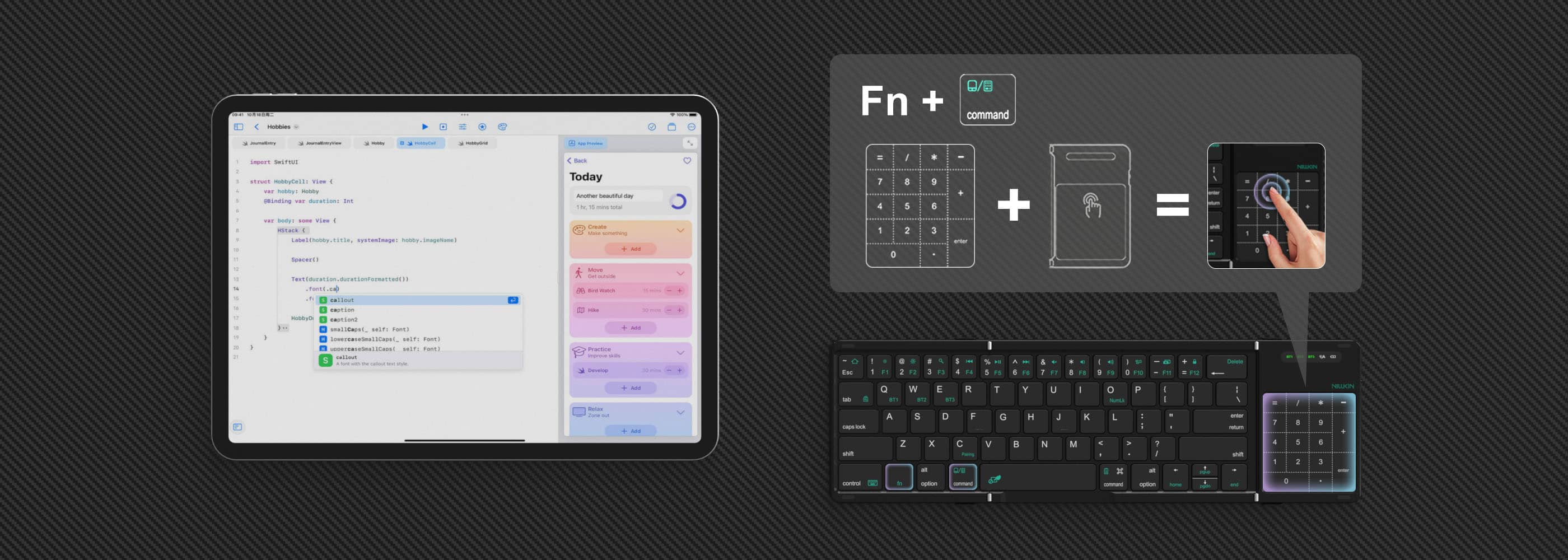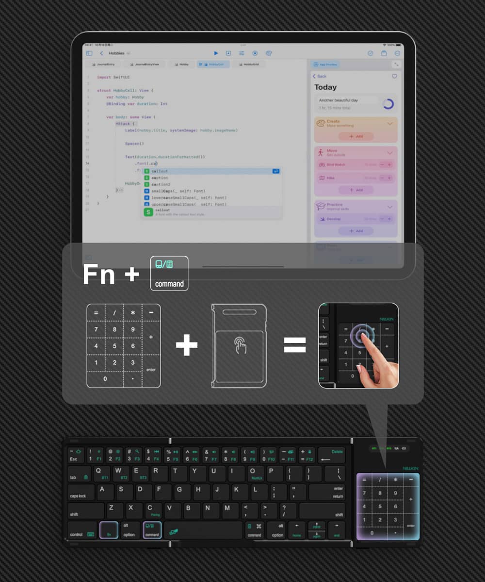 Navigate, scroll, and input numbers with ease—all in one compact keyboard.