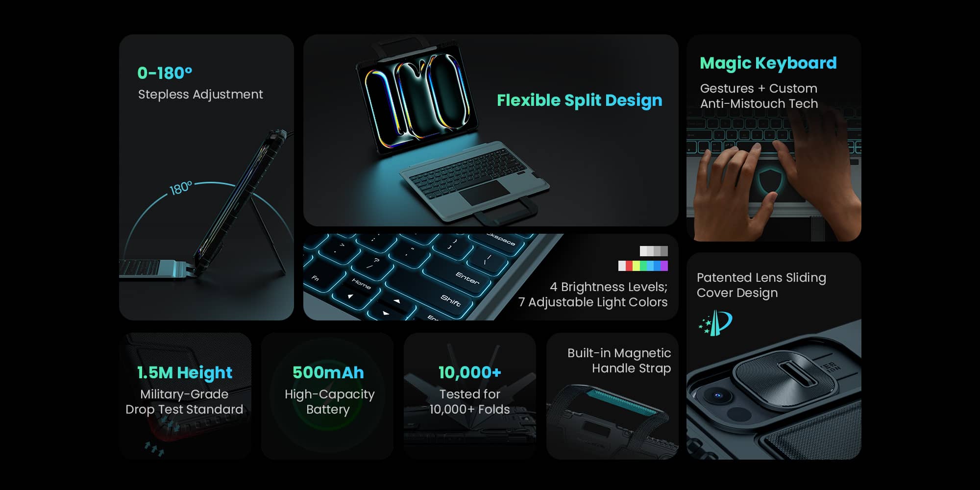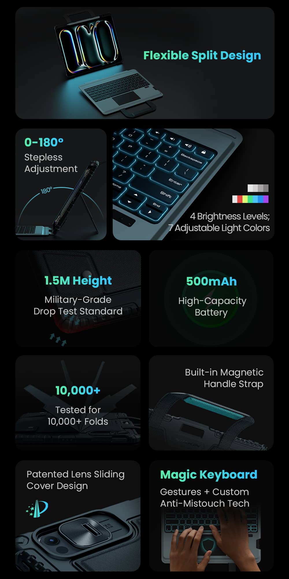 Made from high-strength materials, this case offers comprehensive protection against drops, scratches, and daily wear. Reinforced edges and a soft lining keep your iPad safe and scratch-free.