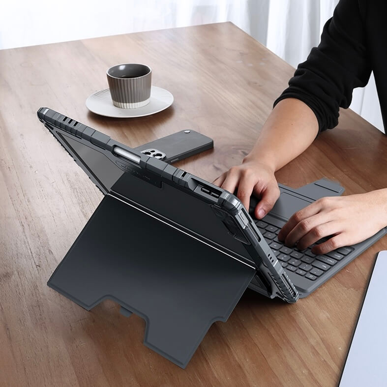 The keyboard case boasts an array of impressive features, including a flexible kickstand that provides multiple tilt angles to perfectly align with your tasks. Whether you're working, watching movies, or browsing the web, you can find the ideal viewing angle. Plus, the detachable 5th-generation keyboard allows you to remove the keyboard for immersive screen enjoyment when typing is not required.