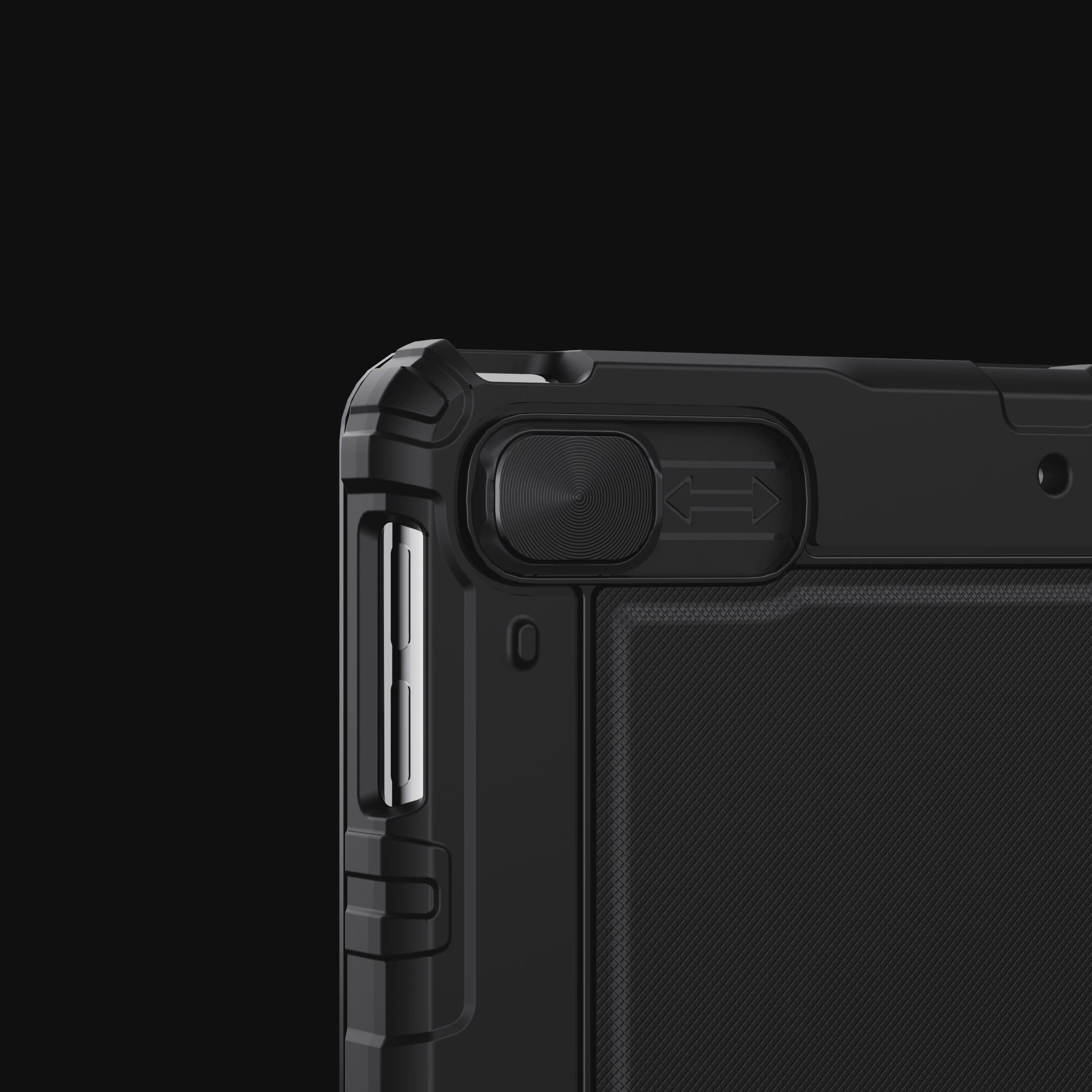 This keyboard case provides the ultimate combination of functionality and protection. Its durable keyboard base, precisely formed hardbound case, and sliding camera cover offer unparalleled safeguarding and privacy for your iPad during use.